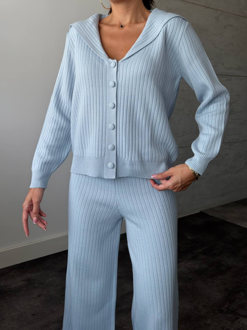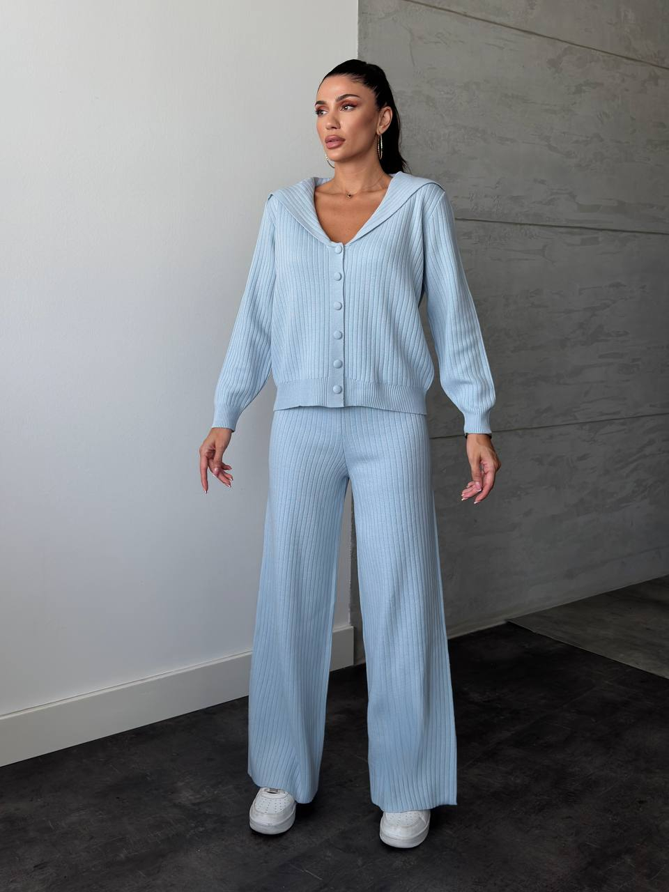 Nuantele armonioase ofera un look casual chic cu influente feminine acestui compleu modern.